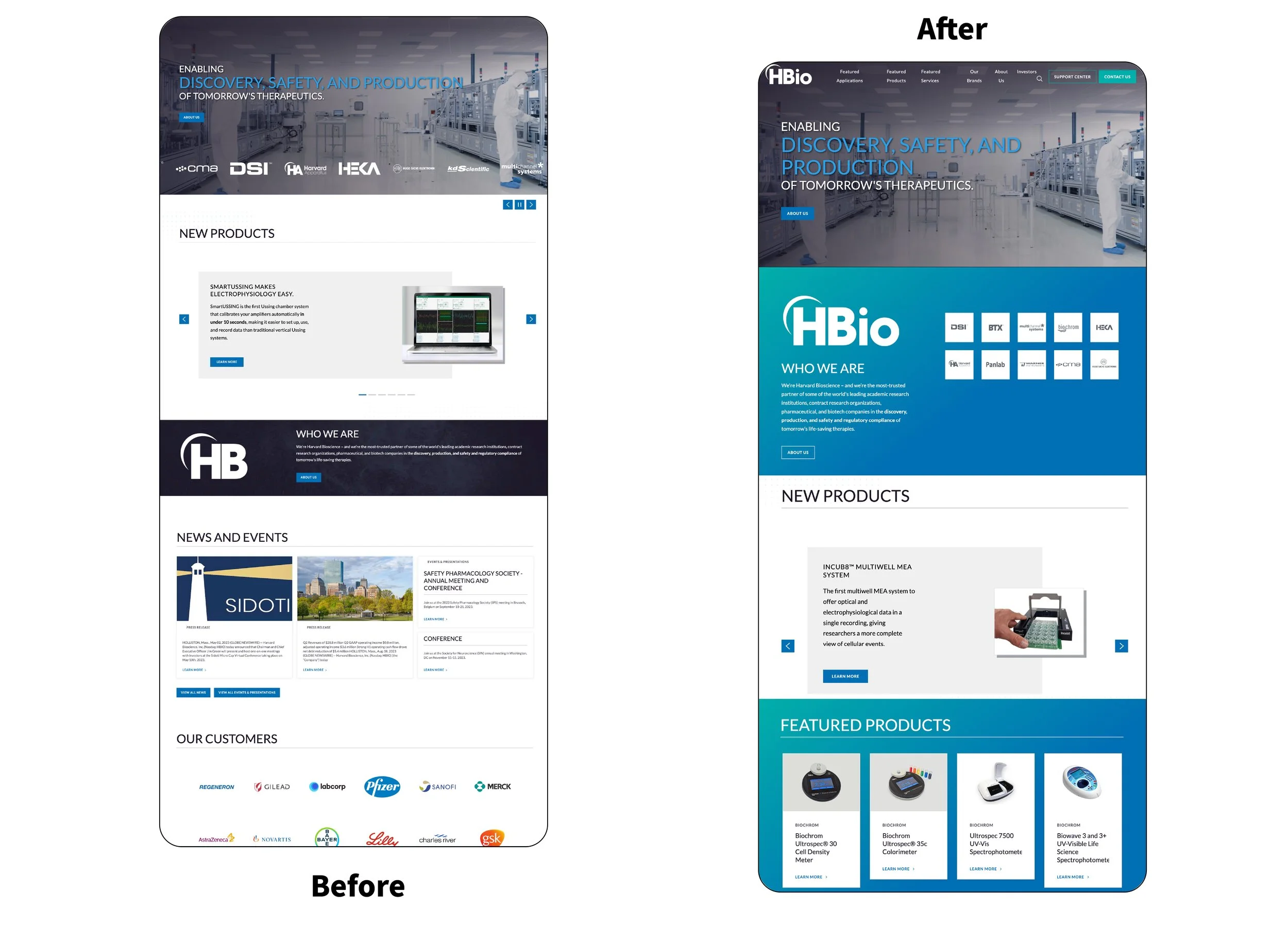 Harvard Bioscience needed a refreshed homepage to improve clarity, usability, and brand consistency across its global scientific audience. I led the full project from strategic planning through launch, ensuring the homepage was easier to navigate and optimized for performance.